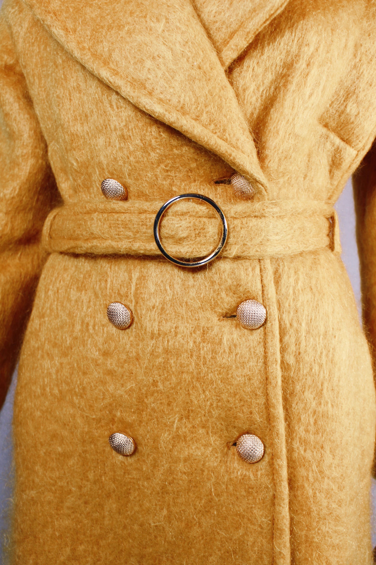 Introducing the luminous statement coat from our timeless elegant mohair trench collection. This exquisite piece, handcrafted in our atelier, is designed to turn heads and elevate your autumn / winter wardrobe. Crafted from 100% mohair, this coat boasts a sumptuous texture that is both incredibly soft and warm. The natural fibers of mohair offer excellent breathability, making it a comfortable choice for cooler days.